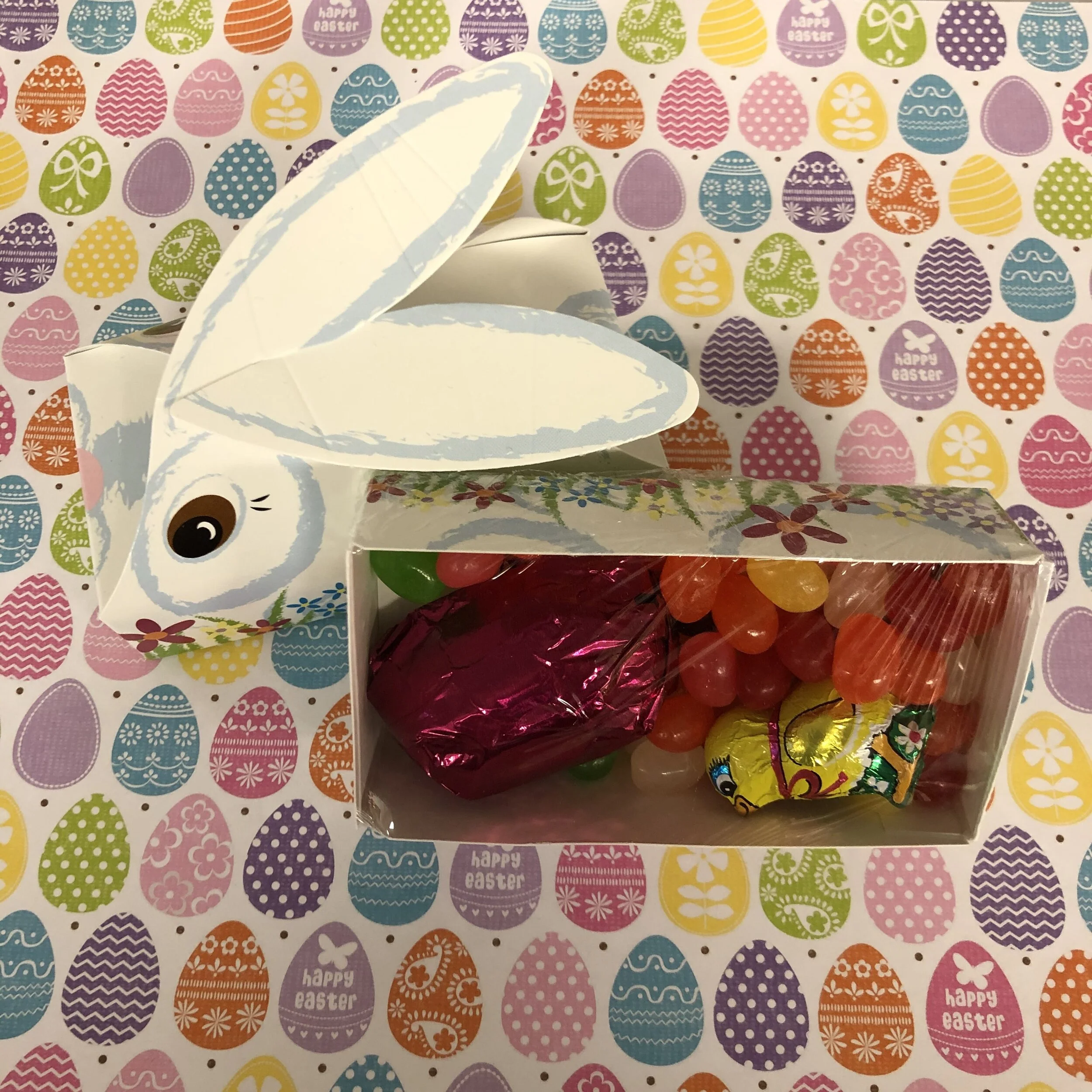 Shop › Bunny Box Image 1 of 1 Bunny Box $6.99 Bunny Box with a Regina’s filled egg, a few foil wrapped candies and a handful of fruit jelly beans Add To Cart Added! Bunny Box with a Regina’s filled egg, a few foil wrapped candies and a handful of fruit jelly beans