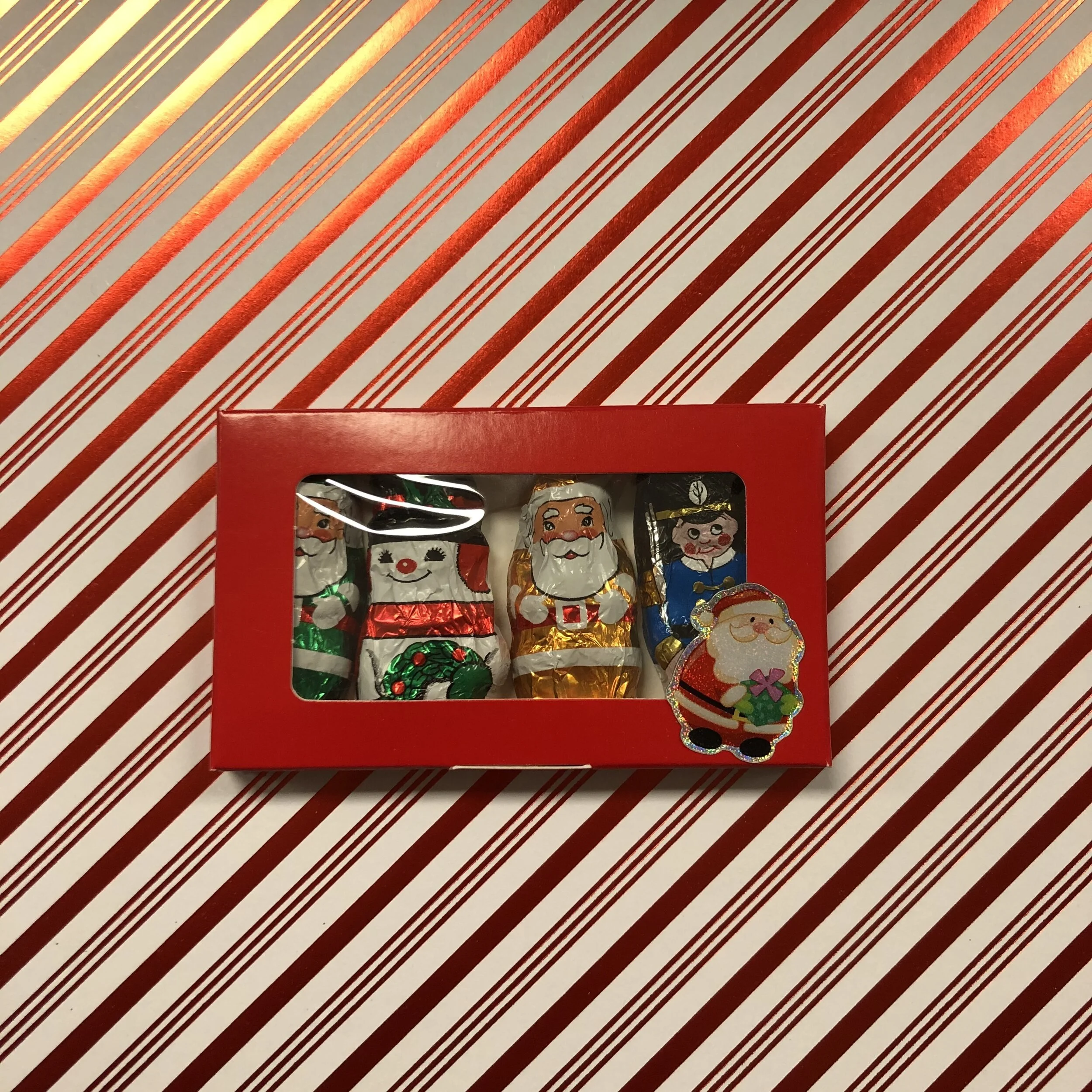 Shop › Christmas In A Box Image 1 of 1 Christmas In A Box $3.29 Small box with foil wrapped santas, soldiers and snowmen. Makes a great stocking stuffer! Quantity: Add To Cart Added! Small box with foil wrapped santas, soldiers and snowmen. Makes a great stocking stuffer!