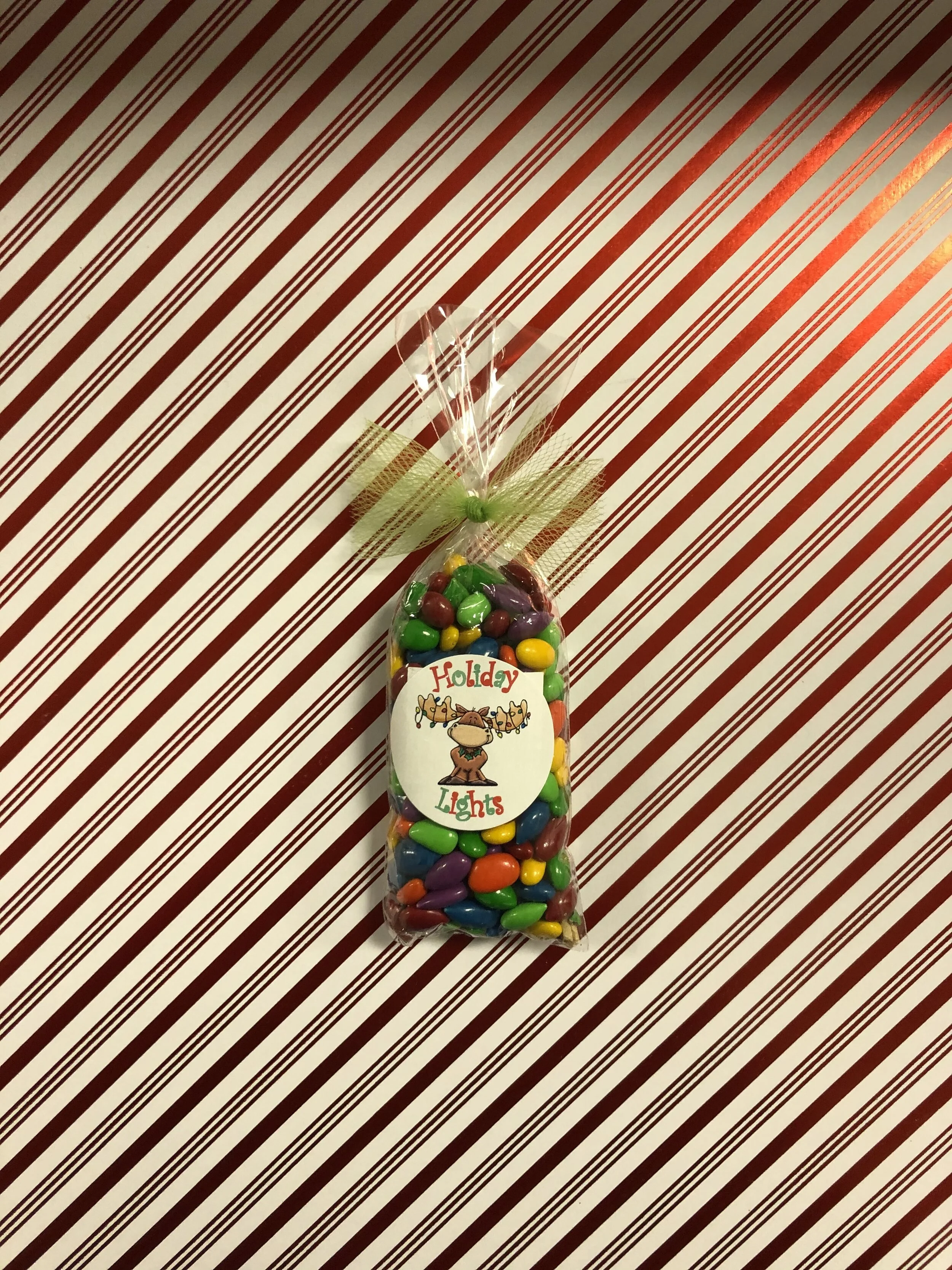 Shop › Holiday Lights Image 1 of 1 Holiday Lights $2.49 Small bag of Holiday Lights (candy coated sunflower seeds). These make a perfect stocking stuffer! Quantity: Add To Cart Added! Small bag of Holiday Lights (candy coated sunflower seeds). These make a perfect stocking stuffer!
