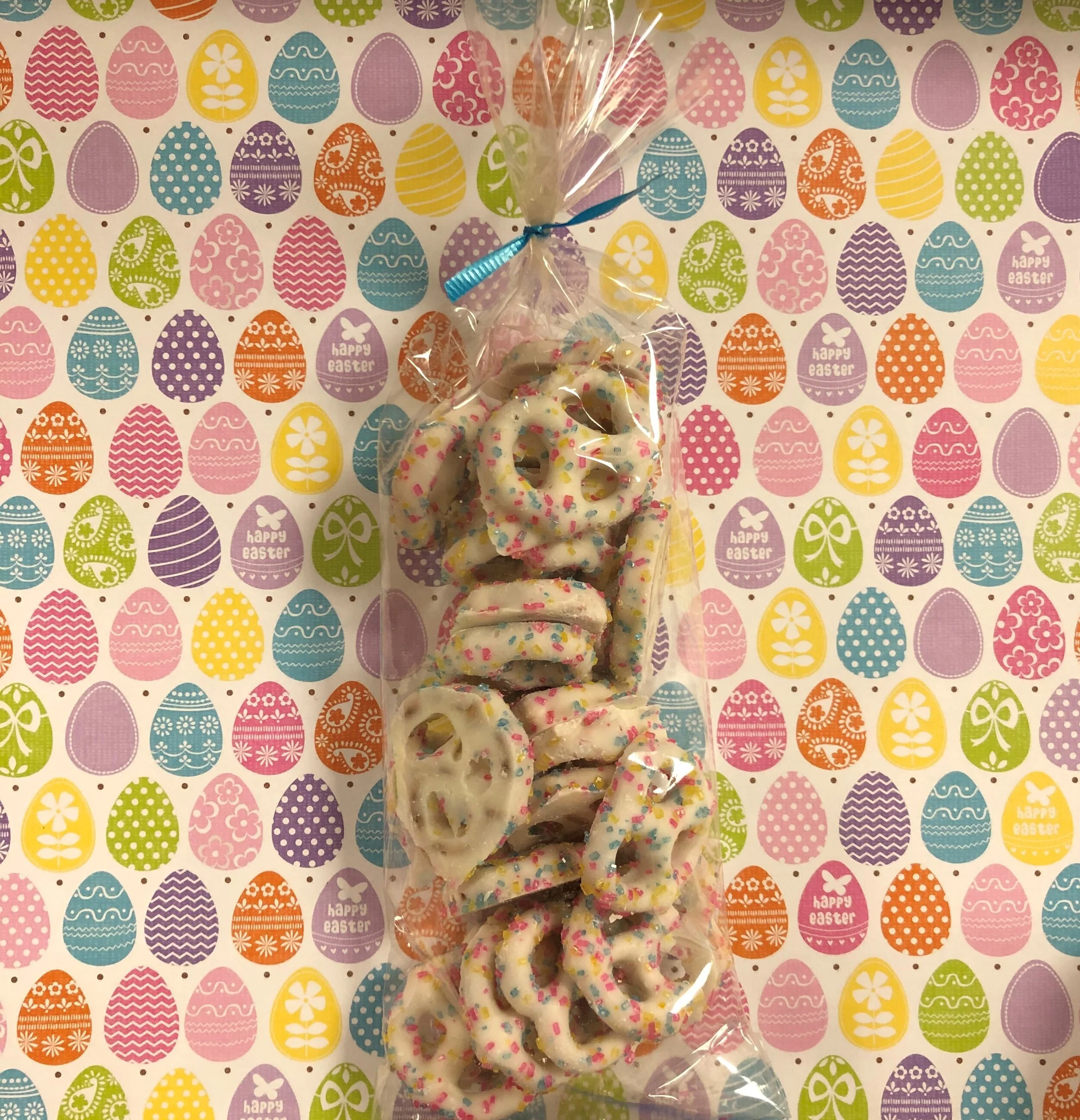 Shop › Confetti Pretzels Image 1 of 1 Confetti Pretzels $6.99 Ice coated confetti pretzels6 ounce bag Add To Cart Added! Ice coated confetti pretzels6 ounce bag