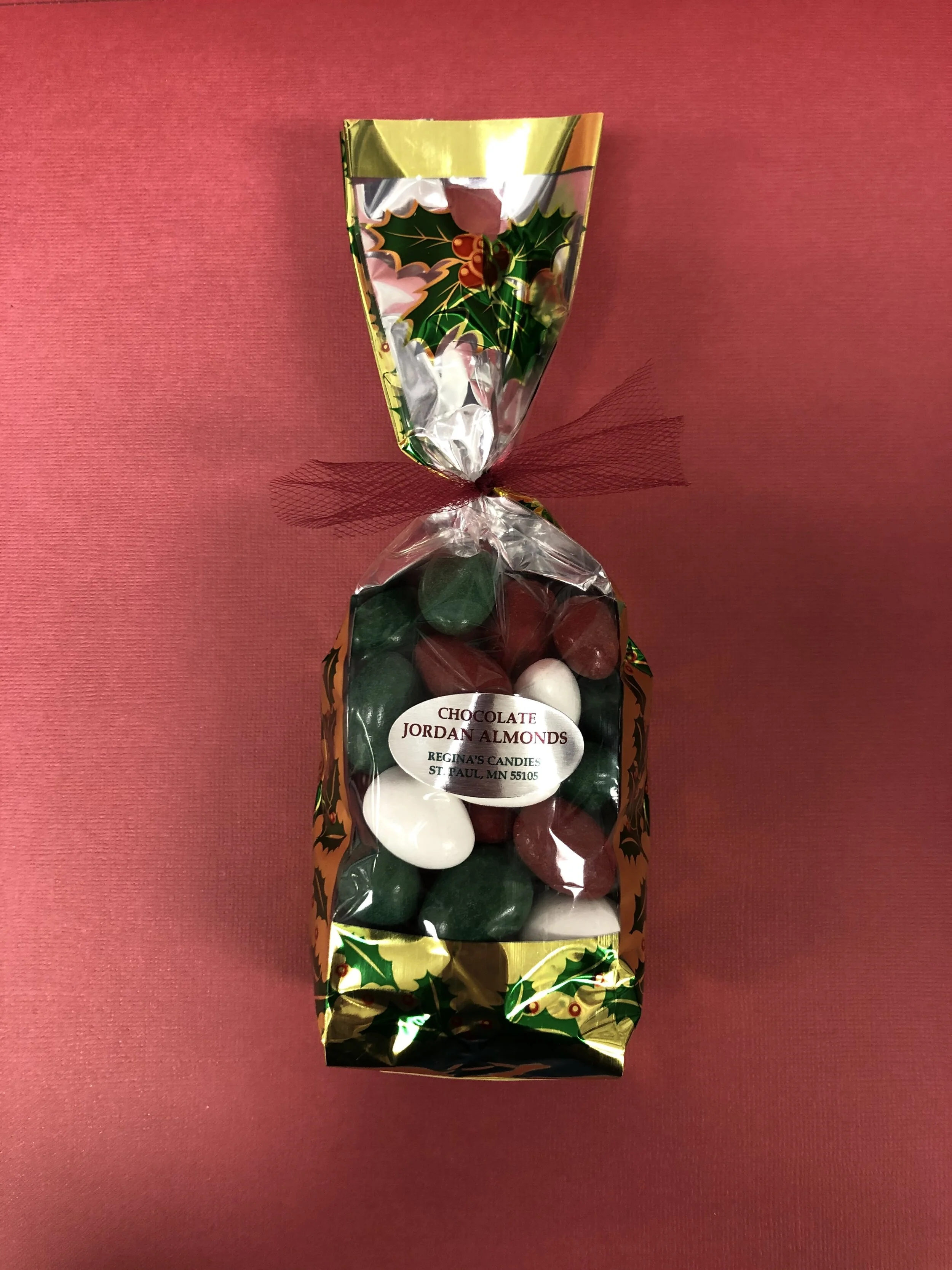 Shop › Christmas Chocolate Jordan Almonds Image 1 of 1 Christmas Chocolate Jordan Almonds $9.29 7oz box of dark chocolate holiday Jordan Almonds. Quantity: Add To Cart Added! 7oz box of dark chocolate holiday Jordan Almonds.