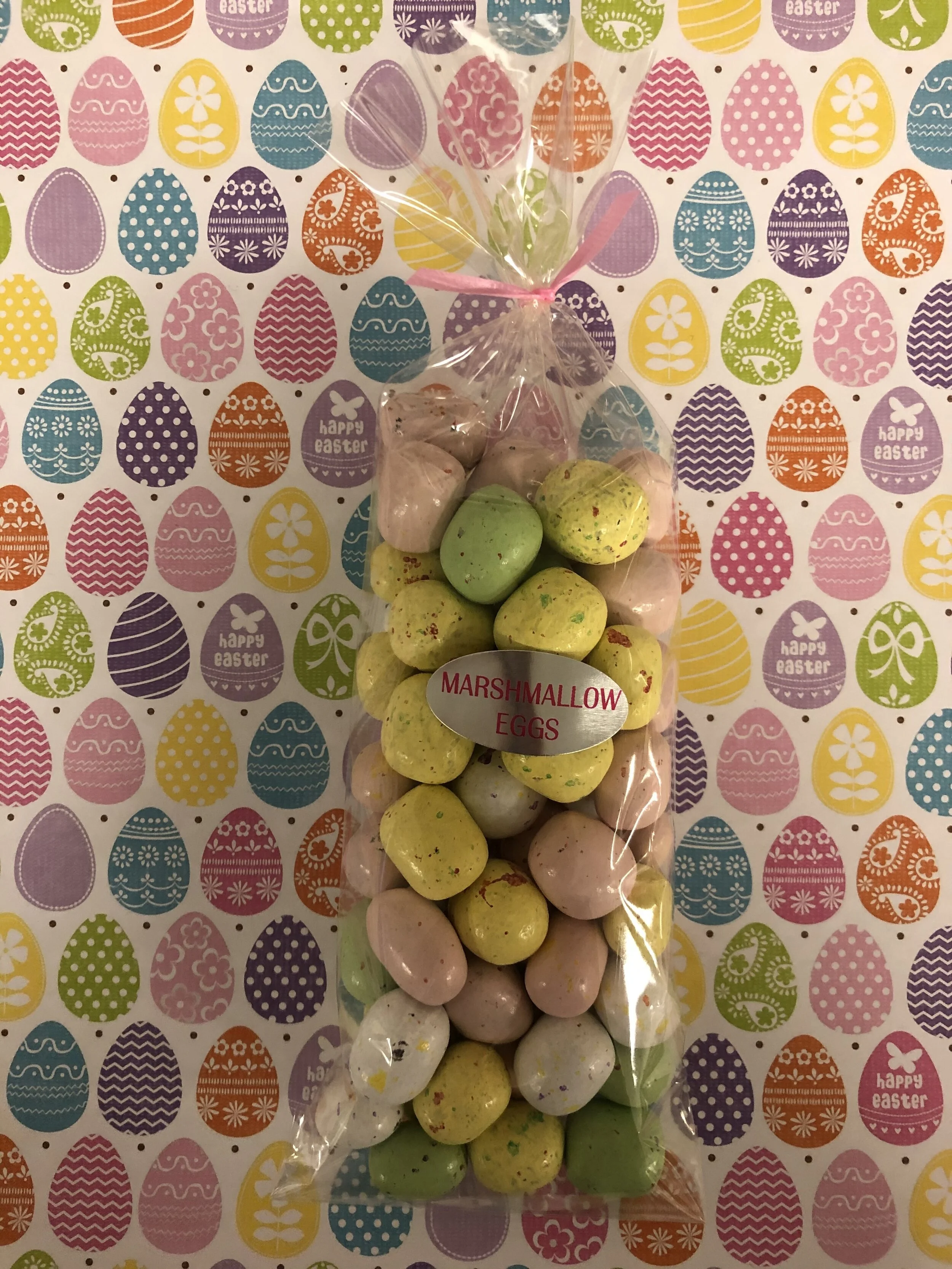 Shop › Marshmallow Eggs Image 1 of 1 Marshmallow Eggs $8.49 Candy coated chocolate covered marshmallow eggs7 ounce bag Add To Cart Added! Candy coated chocolate covered marshmallow eggs7 ounce bag