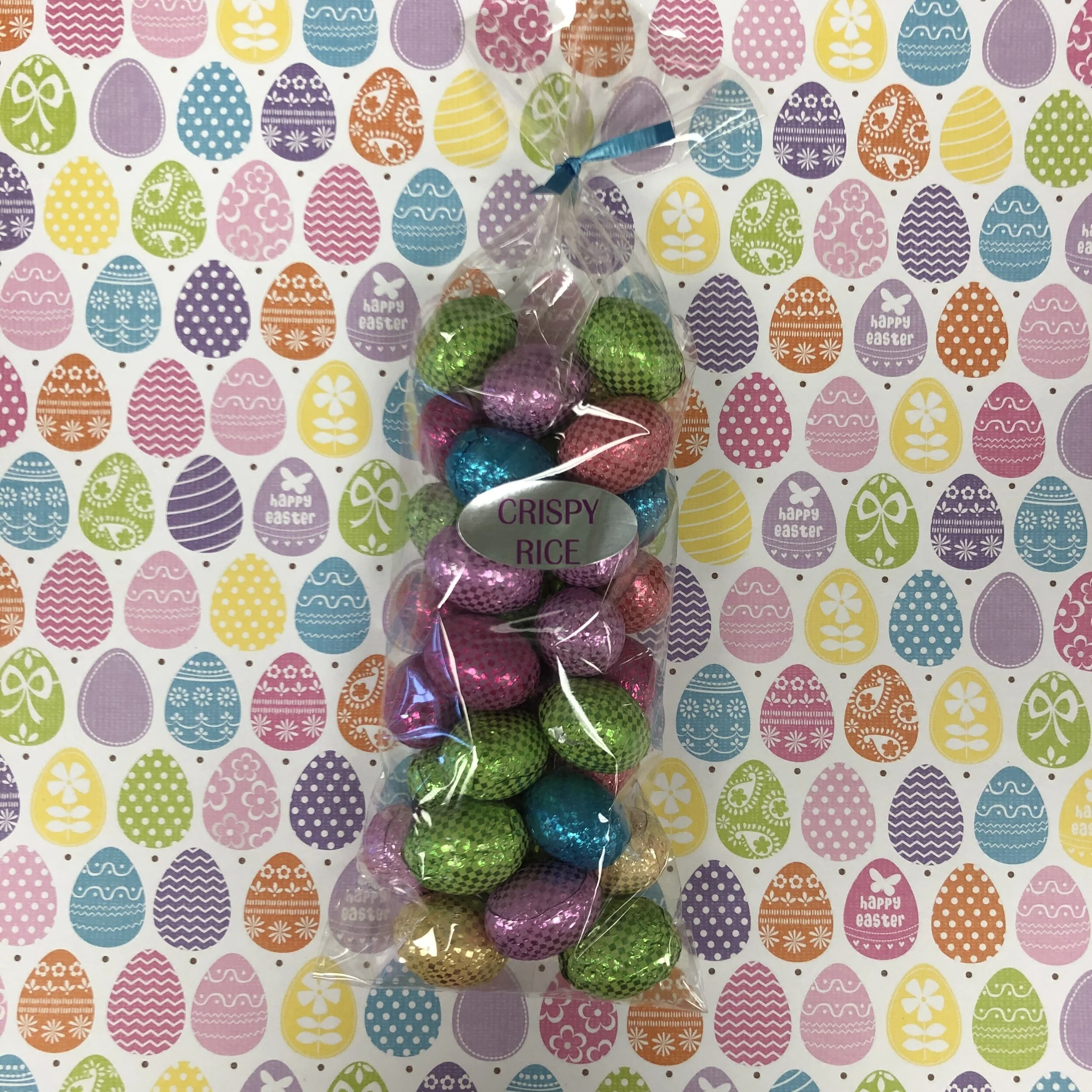Shop › Milk Chocolate Crisp Rice Eggs Image 1 of 1 Milk Chocolate Crisp Rice Eggs $10.99 6.25 oz. bag of milk chocolate crisp rice eggs Add To Cart Added! 6.25 oz. bag of milk chocolate crisp rice eggs