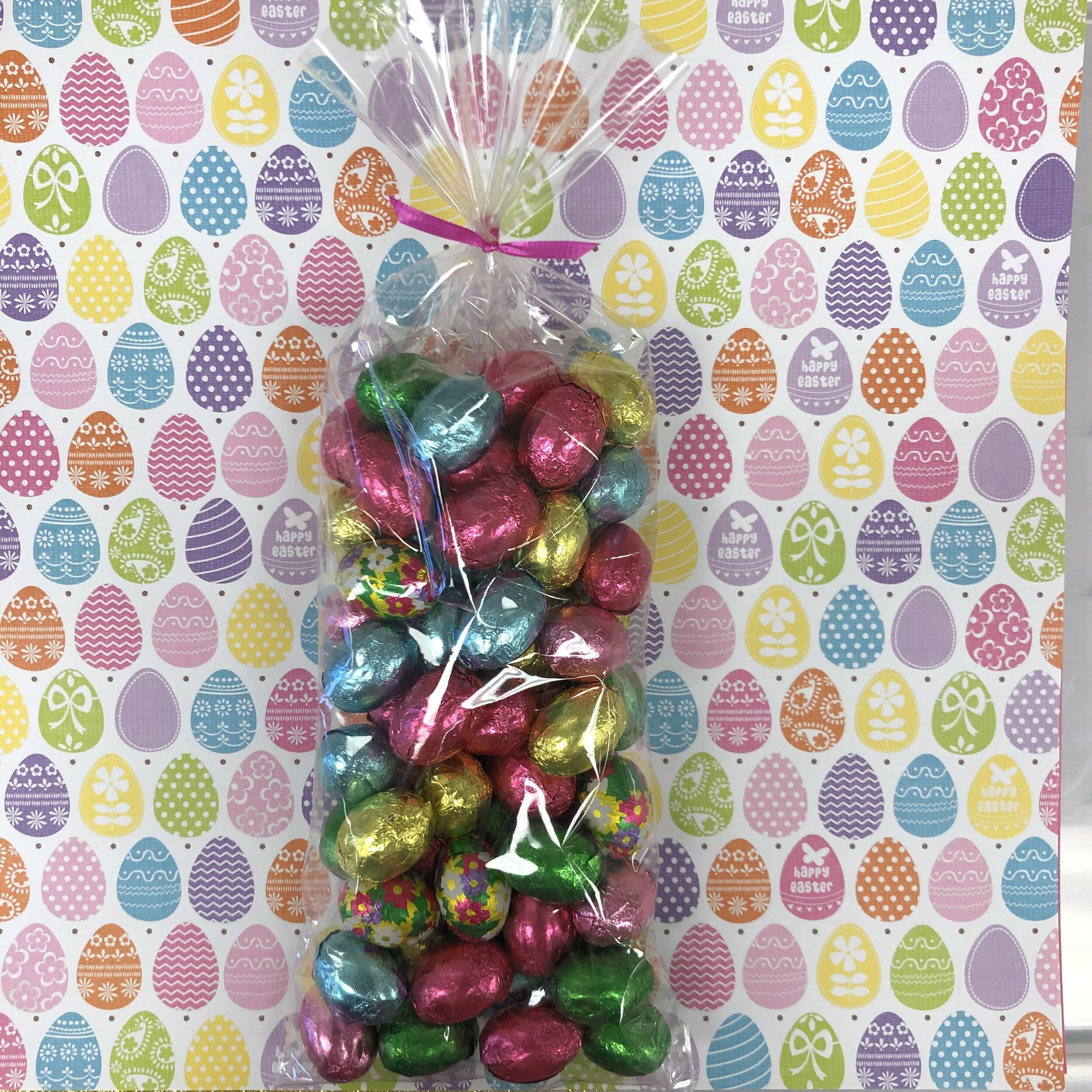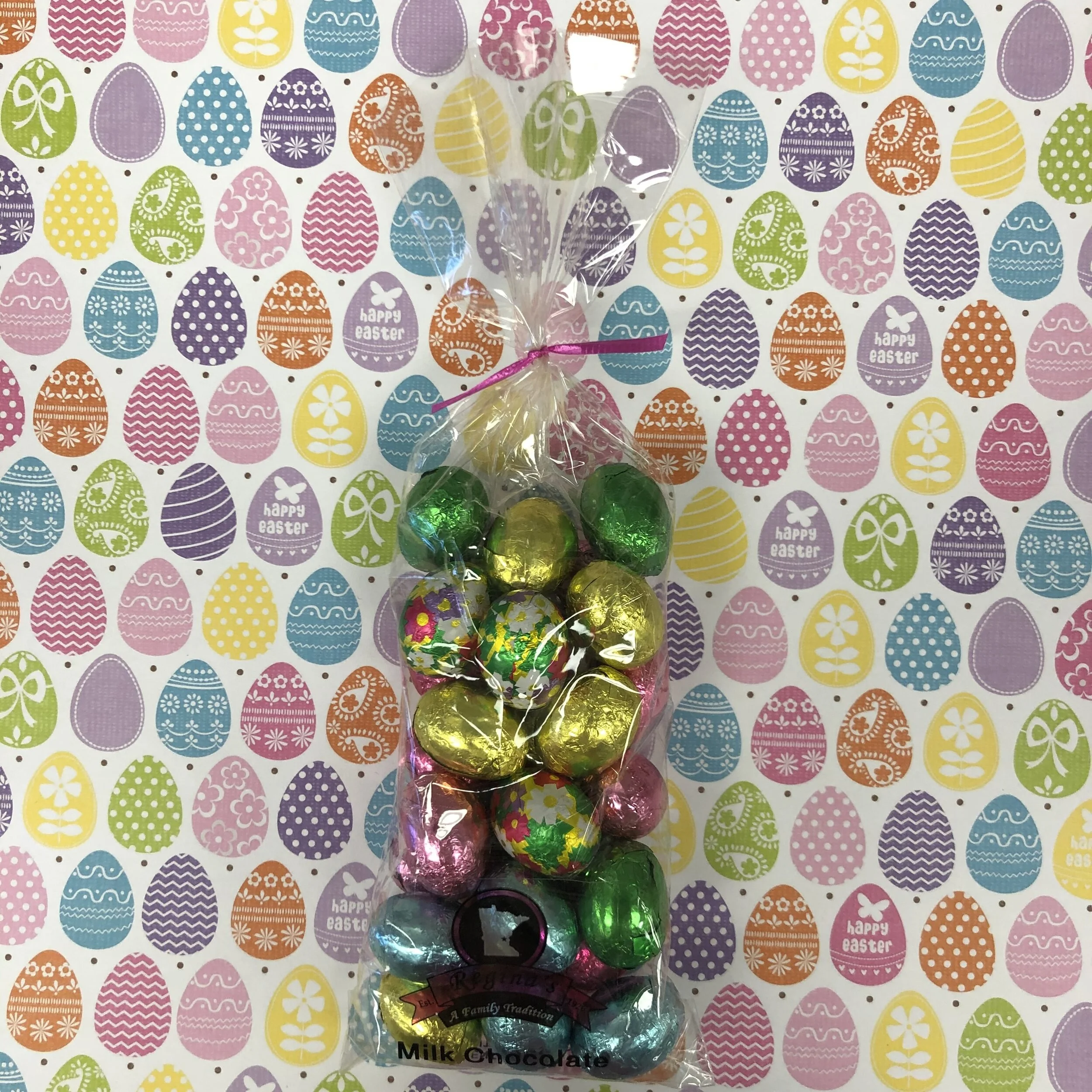 Shop › Milk Chocolate Foil Wrapped Eggs Image 1 of 2 Image 2 of 2 Milk Chocolate Foil Wrapped Eggs from $10.99 Milk chocolate foil wrapped eggs.7 ounce or 1 pound bags. Please choose from the drop down menu. Size: Select Size 7 Ounce 1 Pound Add To Cart Added! Milk chocolate foil wrapped eggs.7 ounce or 1 pound bags. Please choose from the drop down menu.