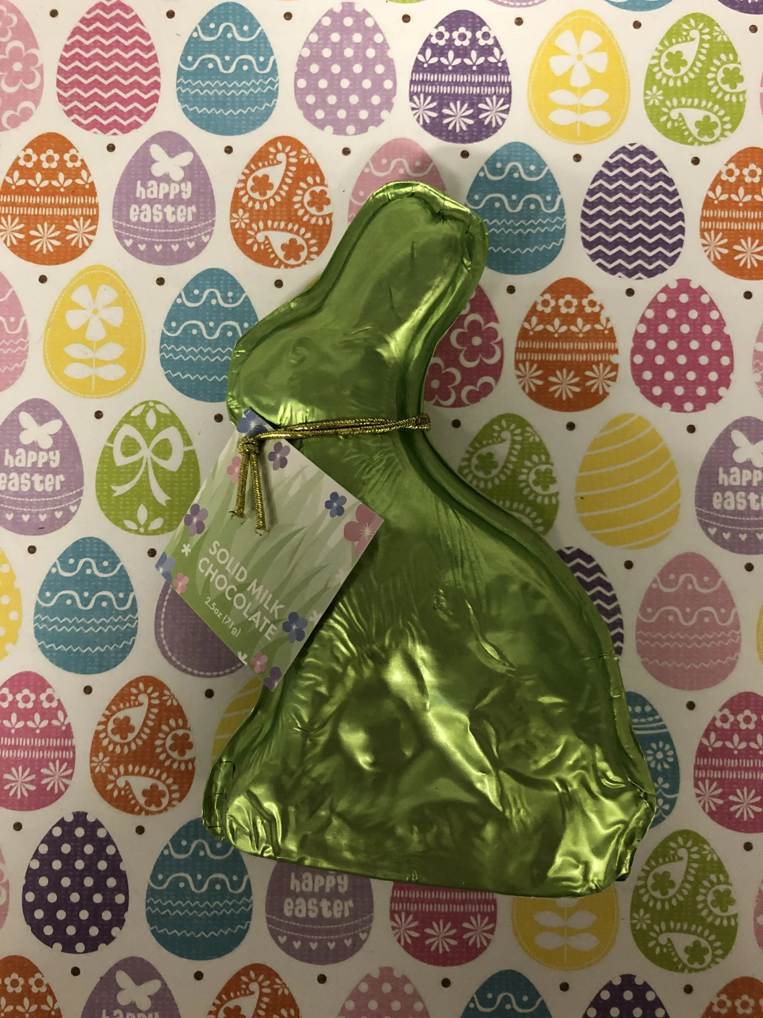 Regina’s milk chocolate solid foil wrapped bunnies.