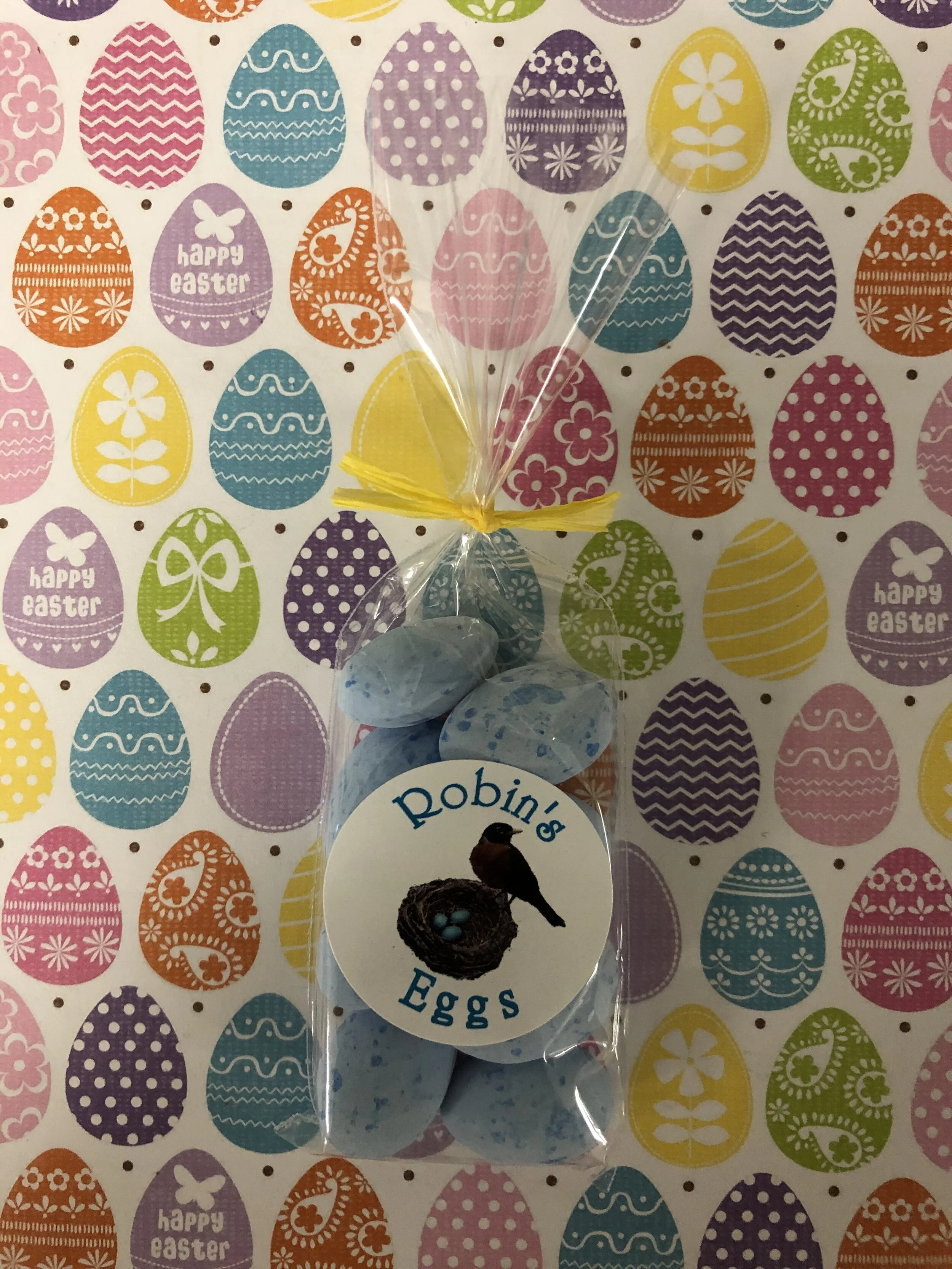 Shop › Robin's Eggs Image 1 of 1 Robin's Eggs $2.49 Small bag of chocolate covered candy coated caramel eggs.These make the perfect addition to any Easter basket! Add To Cart Added! Small bag of chocolate covered candy coated caramel eggs.These make the perfect addition to any Easter basket!